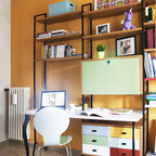 Immagine di un atelier minimalista di medie dimensioni con pareti bianche e scrivania autoportante — Houzz