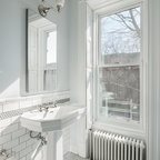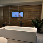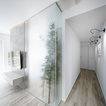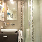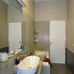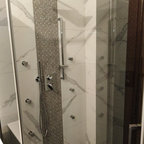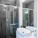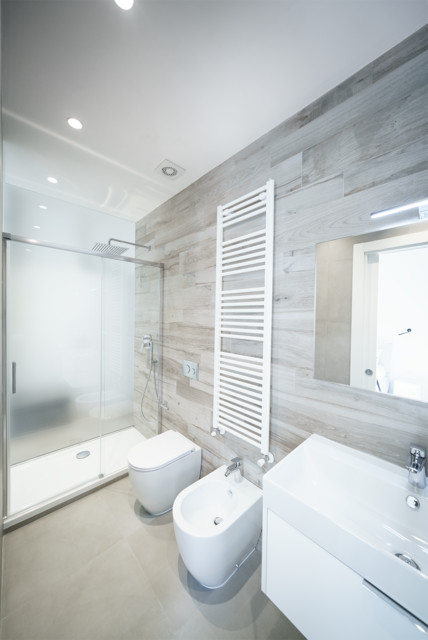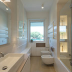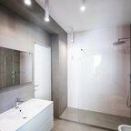 Ispirazione per una stanza da bagno con doccia minimalista con ante lisce, ante bianche e doccia alcova — Houzz