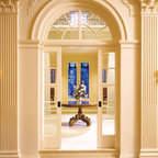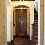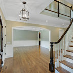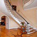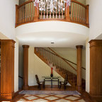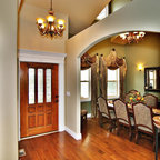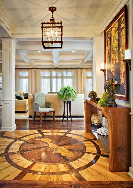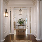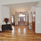 Immagine di un grande ingresso classico con pavimento in legno massello medio e pareti bianche — Houzz
