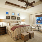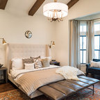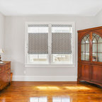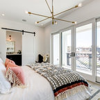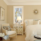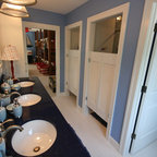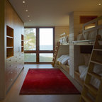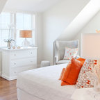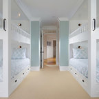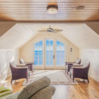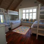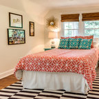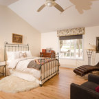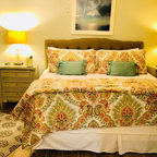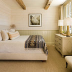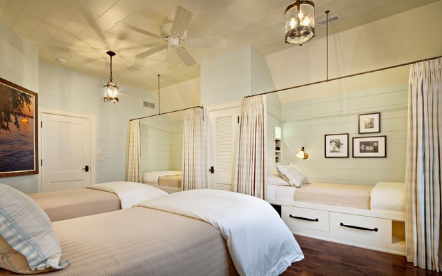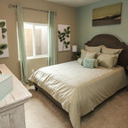 Foto di una grande camera degli ospiti stile marino con pareti verdi, parquet scuro e nessun camino — Houzz