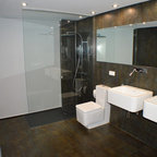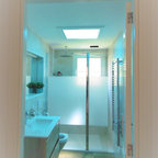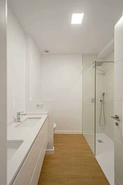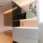 Esempio di una stanza da bagno moderna con top bianco — Houzz