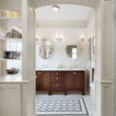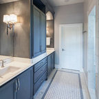 Working with the homes original floor plans from 1886, our skilled design team reconfigured the space to achieve the desired solution. The Master Bath design included cabinetry and arched doorways that create the sense of separate and distinct rooms for the toilet, shower and sink area, while maintaining openness to create the feeling of a larger space. The sink cabinetry was designed as a free-standing furniture piece which also enhances the sense of openness and larger scale.