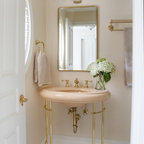In the new Family Bath, painted walls and woodwork keep the space bright while the Anne Sacks marble mosaic tile pattern referenced throughout creates a continuity of color, form, and scale. Design elements such as the vanity and the mirrors give a more contemporary twist to the period style of these elements of the otherwise small basic box-shaped room thus contributing to the visual interest of the space.