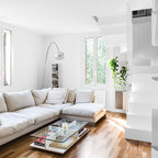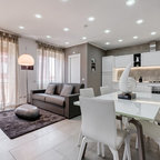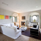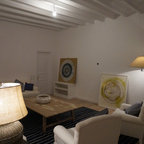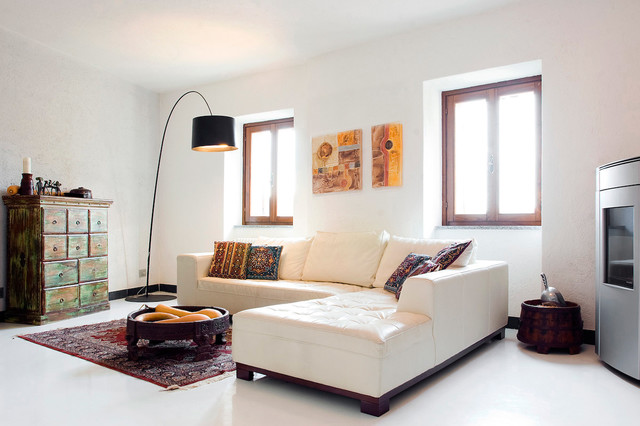Immagine di un soggiorno mediterraneo con pareti bianche e pavimento bianco — Houzz
