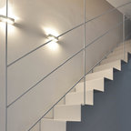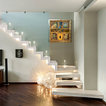 7. Riflessi e trasparenzeSe l’abitazione è sviluppata su più livelli, si può decorare la scala con la luce. Ad esempio, puoi incassare lungo i gradini dei faretti: indirizzano il fascio luminoso sulla pedana e, oltre a illuminare, rendono l’ambiente elegante. Scegli faretti piccoli e dalle forme lineari perché passino inosservati, lascia che la vera protagonista sia la luce.Puoi spegnere l’illuminazione d’ambiente e lasciare accessi i faretti sulla scala per un risultato ancora più scenografico. Se il parapetto è in vetro, la superficie trasparente riflette la luce creando un atmosfera molto suggestiva.L’idea in più: se desideri rendere più prezioso l’ambiente o se ami lo stile minimale e non vuoi interruttori a vista, puoi montare dei sensori di movimento che garantiscono l’accensione delle luci al passaggio. Una soluzione scelta spesso per l’esterno, interessante anche per l’interno, per le scale o le zone di passaggio.Potrebbe interessarti leggere anche Scale: Ringhiere e Parapetti che Trasformano l’Ambiente