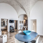 3. Come si fa a mettere in comunicazione la parte più antica di un edificio del centro storico con i materiali moderni?«È qui la chiave di una ristrutturazione di successo», afferma Bibi Barberi. La sfida dei professionisti chiamati a intervenire nei centri storici si gioca tutta sul rapporto tra tecniche di costruzione, materiali e modus operandi moderni ed edifici realizzati con metodi, strumentazioni e materiali antichi. Il rischio maggiore quando si ristruttura nei centri storici è dato proprio dalla possibilità che gli interventi moderni vadano a intaccare la bellezza e il valore degli elementi costruttivi originali, come la pietra a vista, i soffitti a volte o i pavimenti autentici. «È sostanziale puntare su armonia ed equilibrio e fare in modo che tutto si sposi perfettamente ed esalti ciò che la storia ci ha lasciato, che è unico e insostituibile», proseguono i membri dello stesso team di progettazione.