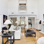 Foto di un piccolo soggiorno contemporaneo chiuso con pareti bianche, pavimento in ardesia, camino classico, cornice del camino in pietra e nessuna TV — Houzz