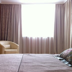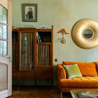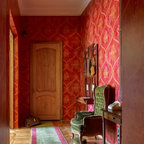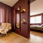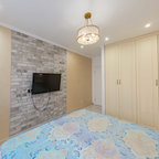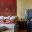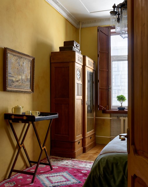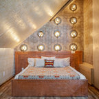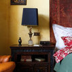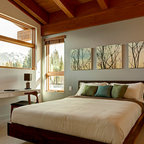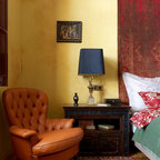 Esempio di una camera matrimoniale etnica di medie dimensioni con pareti beige, pavimento in legno massello medio e pavimento beige — Houzz