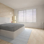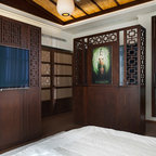 Ispirazione per una camera matrimoniale etnica con pareti bianche e pavimento in legno massello medio — Houzz