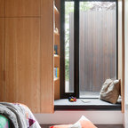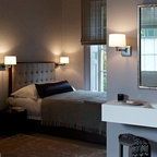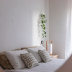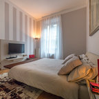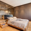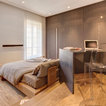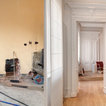 Sul gradino-pedanaSiamo a Torino, in un’altra stanza dalle dimensioni generose. La zona notte e l’ufficio sono stati separati da una soluzione ingegnosa: è stata infatti rialzata parte della camera e qui è stata posizionata la scrivania.I gradini che permettono di accedere alla zona rialzata diventano anche dei comodini. La parte rialzata diventa funzionale, per esempio, per nascondere gli allacci (dietro la parte vetrata trova sede una stanza da bagno) o per ricavare soluzioni contenitive.