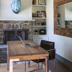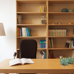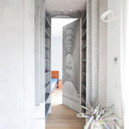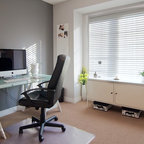 Esempio di un grande ufficio contemporaneo con pareti multicolore, parquet chiaro, scrivania incassata e pavimento beige — Houzz