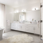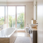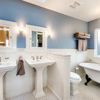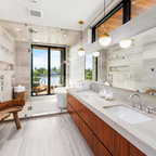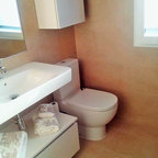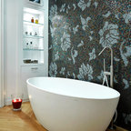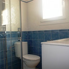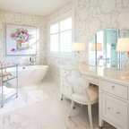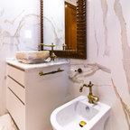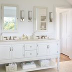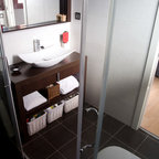 Ispirazione per una piccola stanza da bagno con doccia chic con piastrelle beige — Houzz