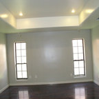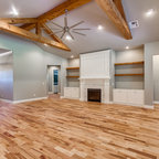 Foto di un soggiorno tradizionale di medie dimensioni e aperto con pareti grigie, camino classico, nessuna TV, sala formale, parquet scuro e pavimento marrone — Houzz