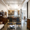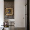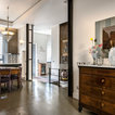 luci su binario, resina a pavimento e mobili antichi e rivisitati
