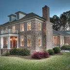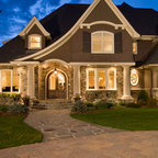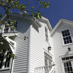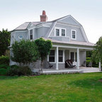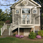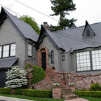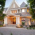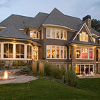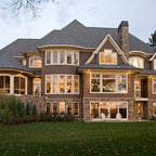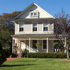 Ispirazione per la facciata di una casa unifamiliare grande marrone vittoriana a due piani con copertura a scandole e rivestimenti misti — Houzz