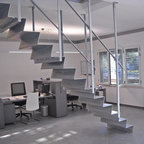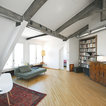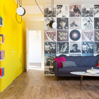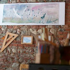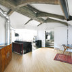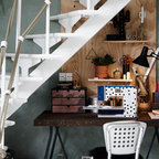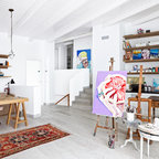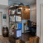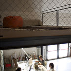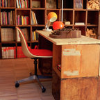 Foto di un grande studio industriale con pareti bianche e parquet chiaro — Houzz
