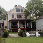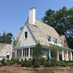 Ispirazione per la facciata di una casa grigia classica a due piani di medie dimensioni con rivestimento in legno — Houzz