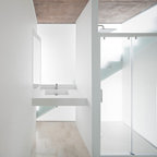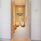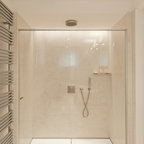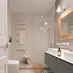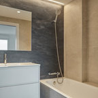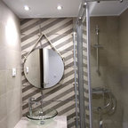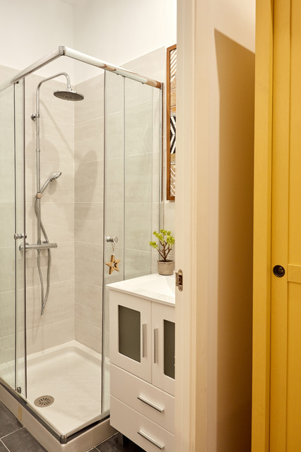 Idee per una piccola stanza da bagno con doccia minimal con piastrelle grigie e piastrelle in ceramica — Houzz