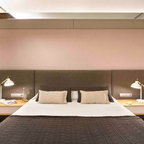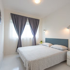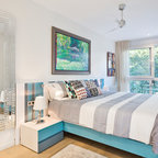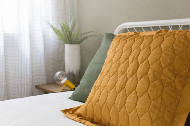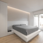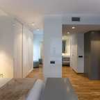 Idee per una piccola camera degli ospiti minimal con pareti verdi e parquet scuro — Houzz