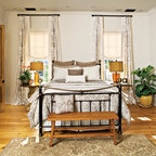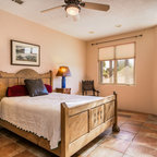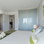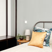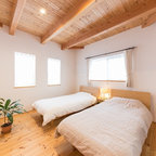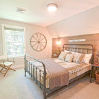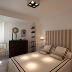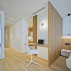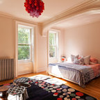 Foto di una piccola camera degli ospiti contemporanea con pareti verdi e parquet scuro — Houzz