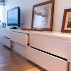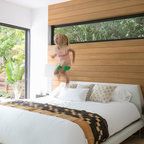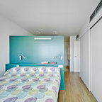 Esempio di una piccola camera degli ospiti design con pareti verdi e parquet scuro — Houzz