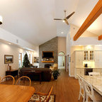 Questa foto, scattata dal soppalco dove si trova la sala tv, mostra la disposizione del secondo piano del fienile. L’open space comprende una zona giorno vicina alle finestre, un piccolo studio nell’angolo all’estrema destra, una zona pranzo e una cucina, quest’ultima sotto il soppalco.Al piano terra troviamo le camere da letto e i bagni principali.Franklin ci racconta che un soffitto di questo tipo è raro. La maggior parte dei fienili realizzati 80 anni fa avevano come scopo principale quello di contenere gli animali, il grano e le attrezzature oltre a consentire lo svolgimento del lavoro in modo economico e rapido. Nel fienile di Towne e Madrilejos, però, qualcuno con una profonda conoscenza dell’ingegneria ha investito tempo e competenze. «È stato fatto molto più lavoro di un tipico fienile», dice. «Quel soffitto è stupendo. È una struttura rara, unica e speciale».Towne racconta che tutto ciò che sa sul costruttore del fienile è che era un veterano che lo usava esclusivamente per i cavalli e come magazzino. «È sicuramente interessante», afferma Towne. «Ci sono molti appassionati di fienili qui, e tutti dicono di non aver mai visto un soffitto come questo».Per preservare le travi a vista, Franklin ha realizzato un cartongesso che nasconde gli elementi meccanici e l’impianto idraulico, mentre ha lasciato il tetto aperto. Ha quindi aggiunto l’isolamento sul tetto esistente e costruito un nuovo tetto al di sopra. «Questo è un fienile/casa unico nel suo genere e non ce ne sarà mai uno uguale», dice.
