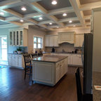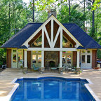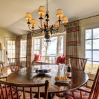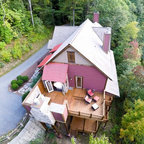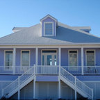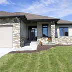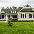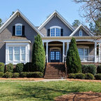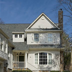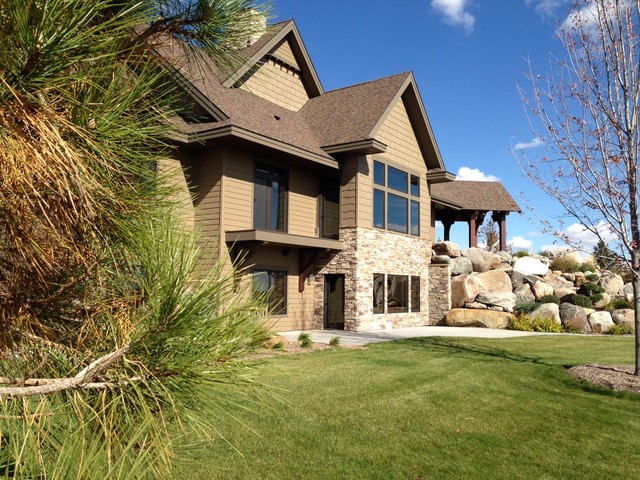 Idee per la facciata di una casa unifamiliare grande beige american style a due piani con rivestimenti misti, tetto a capanna e copertura a scandole — Houzz