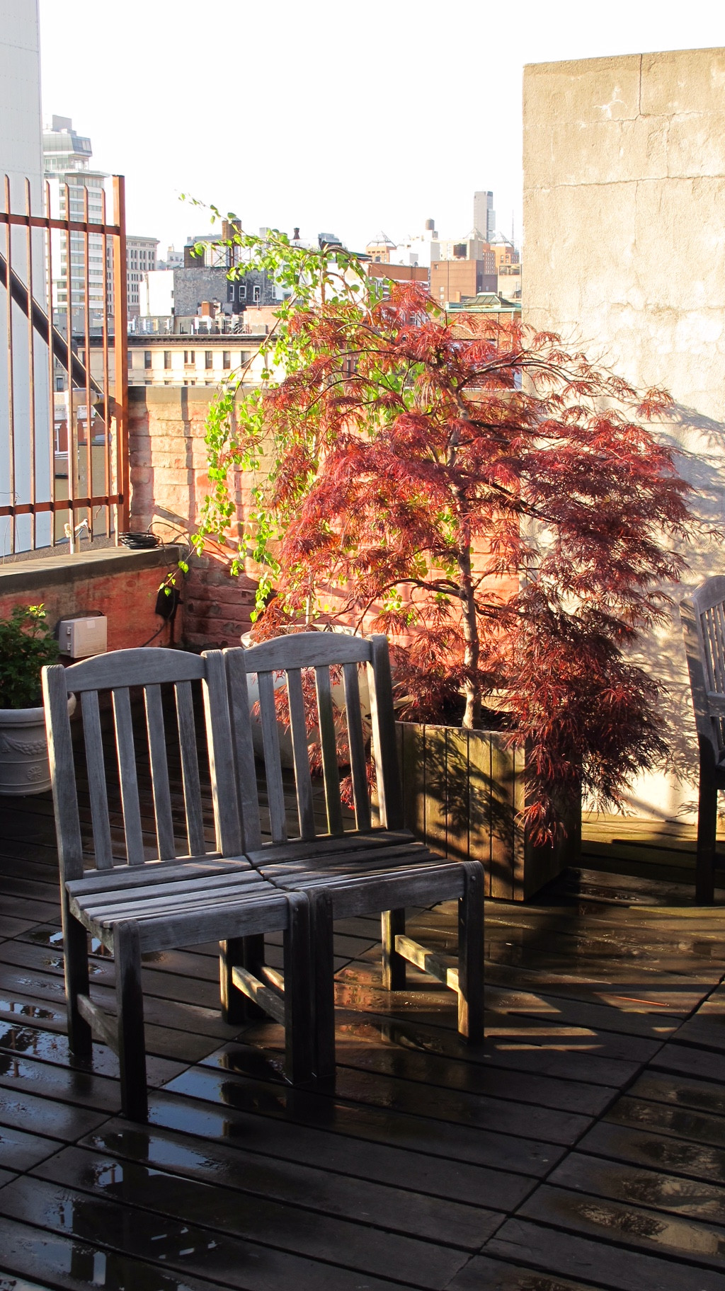 Altri alberi spesso usati per i roof garden sono i pioppi, il Prunus pissardi ‘Nigra’, la magnolia a fiore grande (Magnolia grandiflora), la Lagerstroemia (che può essere allevata anche ad arbusto). La RHS, tra gli alberi da contenitore, indica la Sophora microphylla, e in molti anche il fico comune (Ficus carica). Su quest’ultima scelta rimango scettica, ma può rivelarsi interessante per le forme insolite che l’albero potrebbe assumere. Tuttavia la potenza delle radici non fa del fico comune un albero che può sopravvivere a lungo in vaso, anche se capiente.