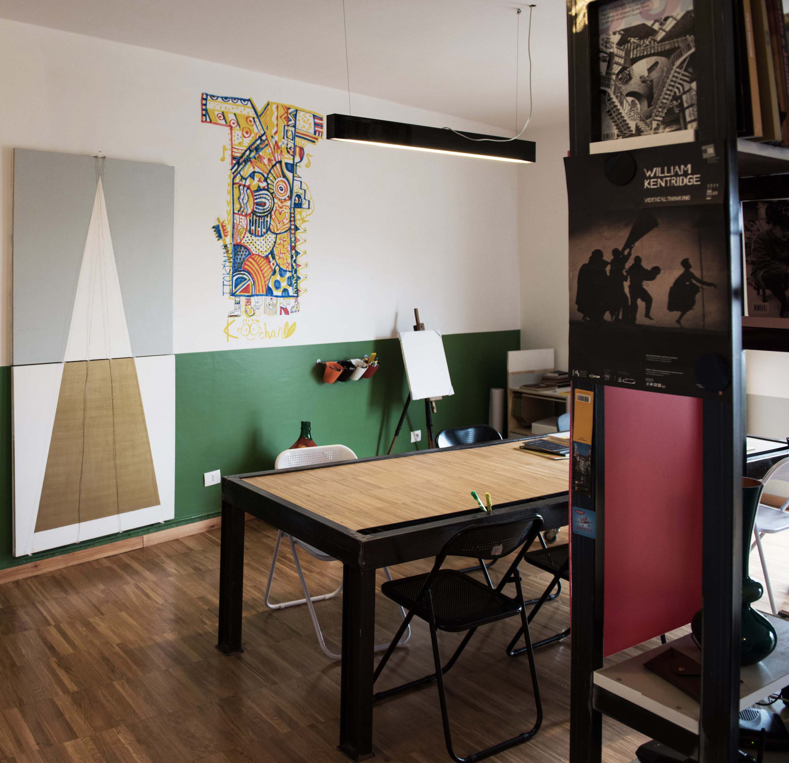 Qui per esempio un grande tagliere è appeso al muro. Quello che all’apparenza sembra un quadro, invece non lo è!