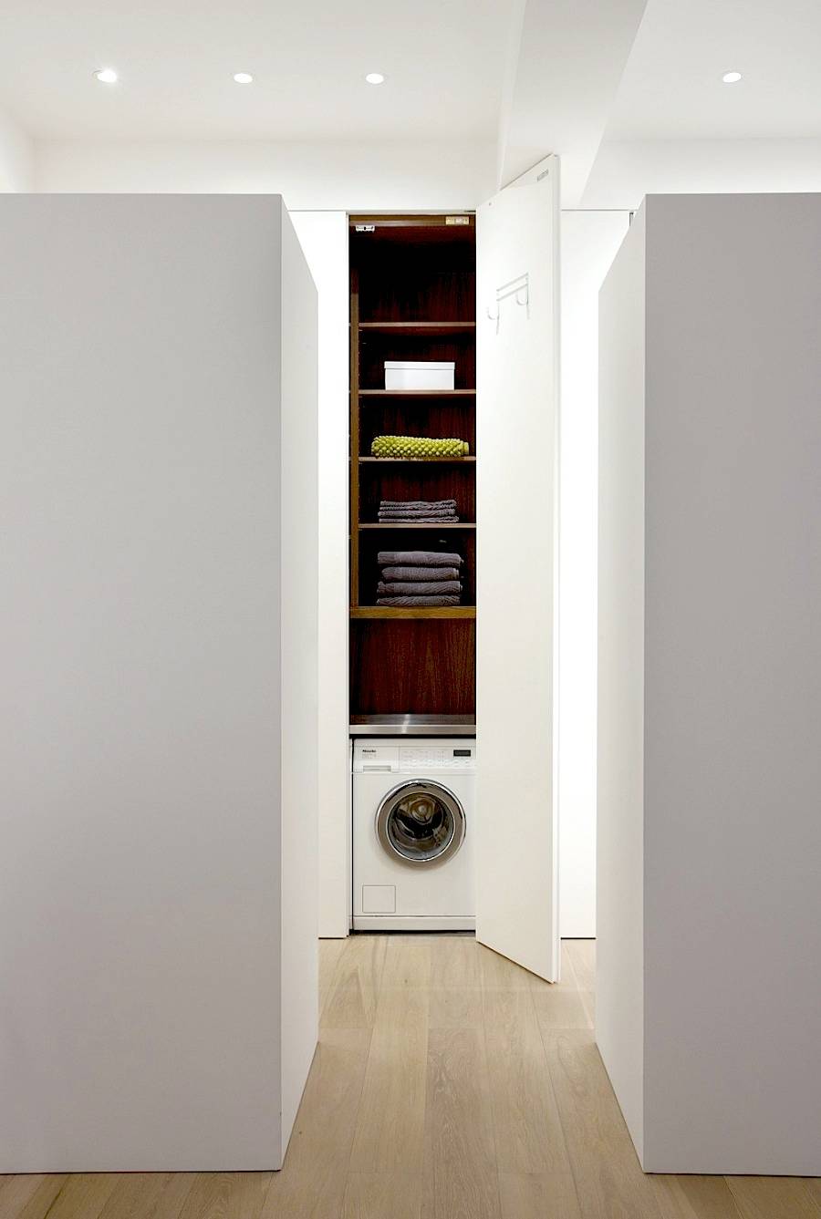 Fai attenzione alla profondità perché in base ai centimetri a tua disposizione, puoi ricavare un ripostiglio o addirittura una piccola lavanderia. In questo caso, ti basterebbero 60 centimetri: esistono, infatti, lavatrici a carica frontale che misurano circa 55 cm, è bene però avere qualche centimetri di agio in più tra l’elettrodomestico e la parete. Sfrutta l’altezza per ricavare mensole e ripiani. Et voilà, anche tu potrai godere della tua mini lavanderia!