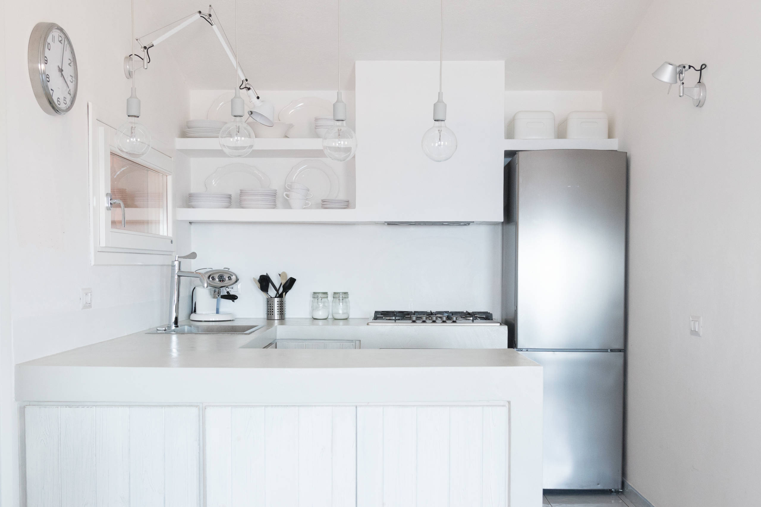 I pensili, così, avranno a disposizione il massimo spazio disponibile e ci saranno mensole sufficienti per contenere stoviglie e alimenti.