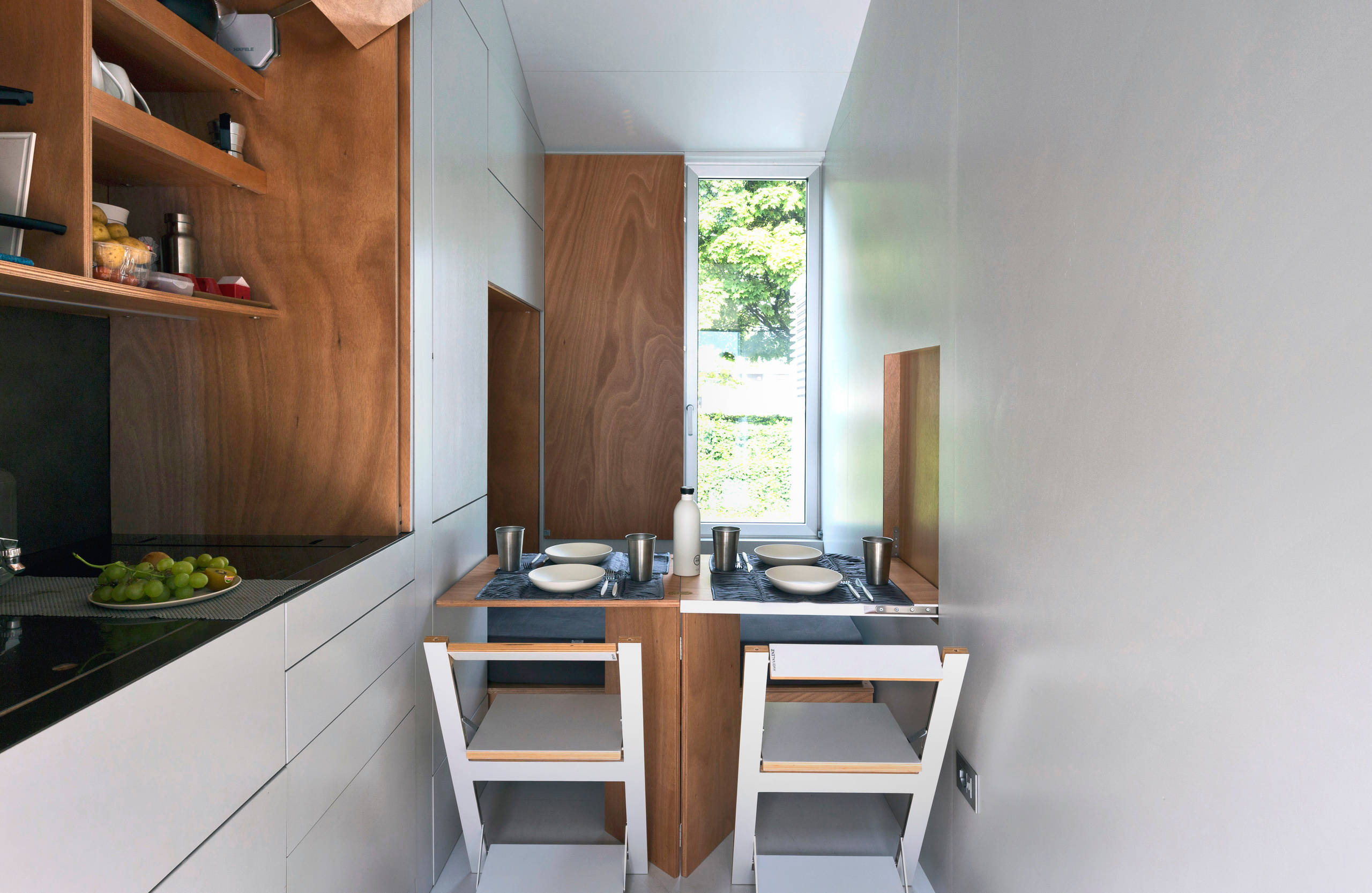 Non solo sedie pieghevoli: anche i tavoli, nelle cucine mini, possono essere reclinabili, ribaltabili o pieghevoli.