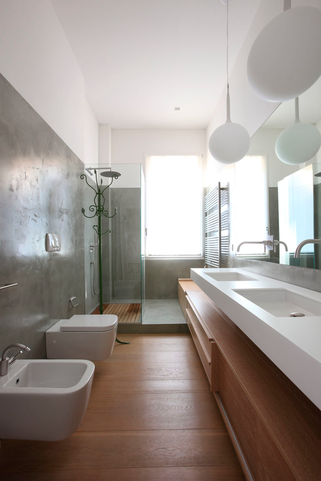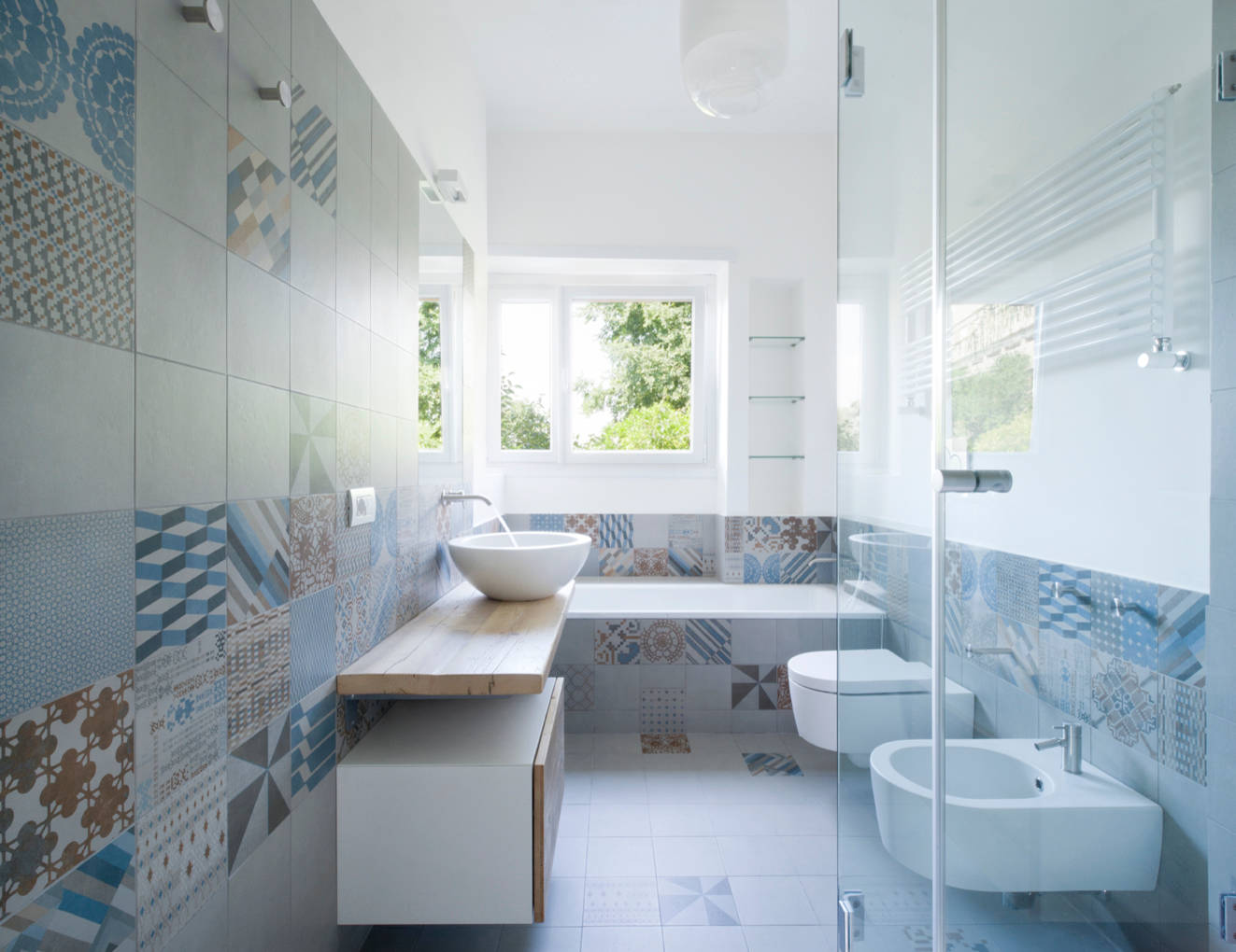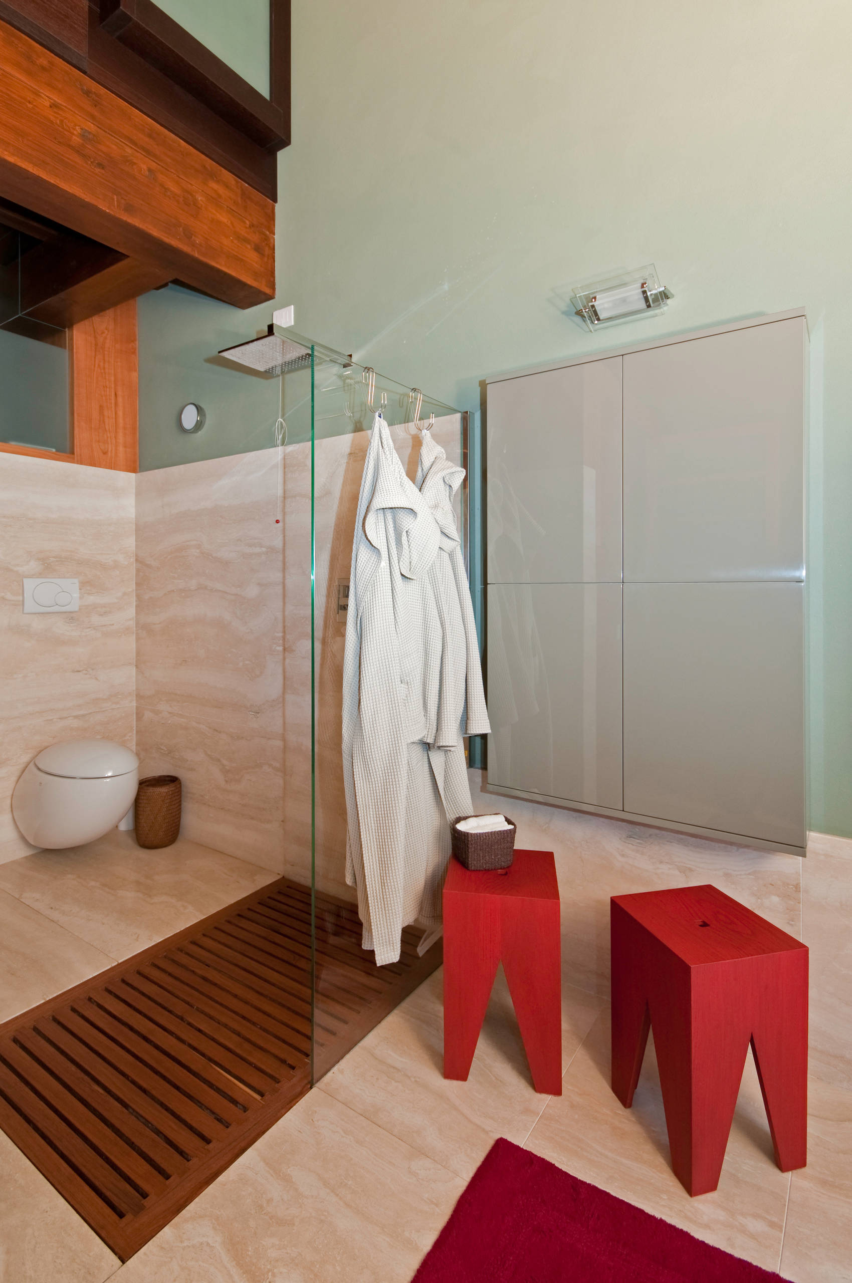 Per installare i sanitari sospesi è necessario disporre di una parete di almeno 10 cm di spessore. Niente paura se c’è il classico tramezzo da 8 cm (insufficiente): esistono soluzioni con cassetta integrata. In questo caso il muro aumenterà di spessore e potrà essere valorizzato, anche cromaticamente, come piano d’appoggio.