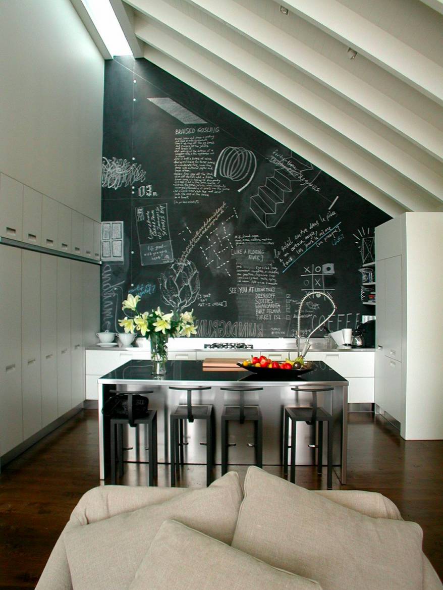 Le pareti dipinte con vernice effetto lavagna sono il modo migliore per unire decoro e funzionalità in cucina