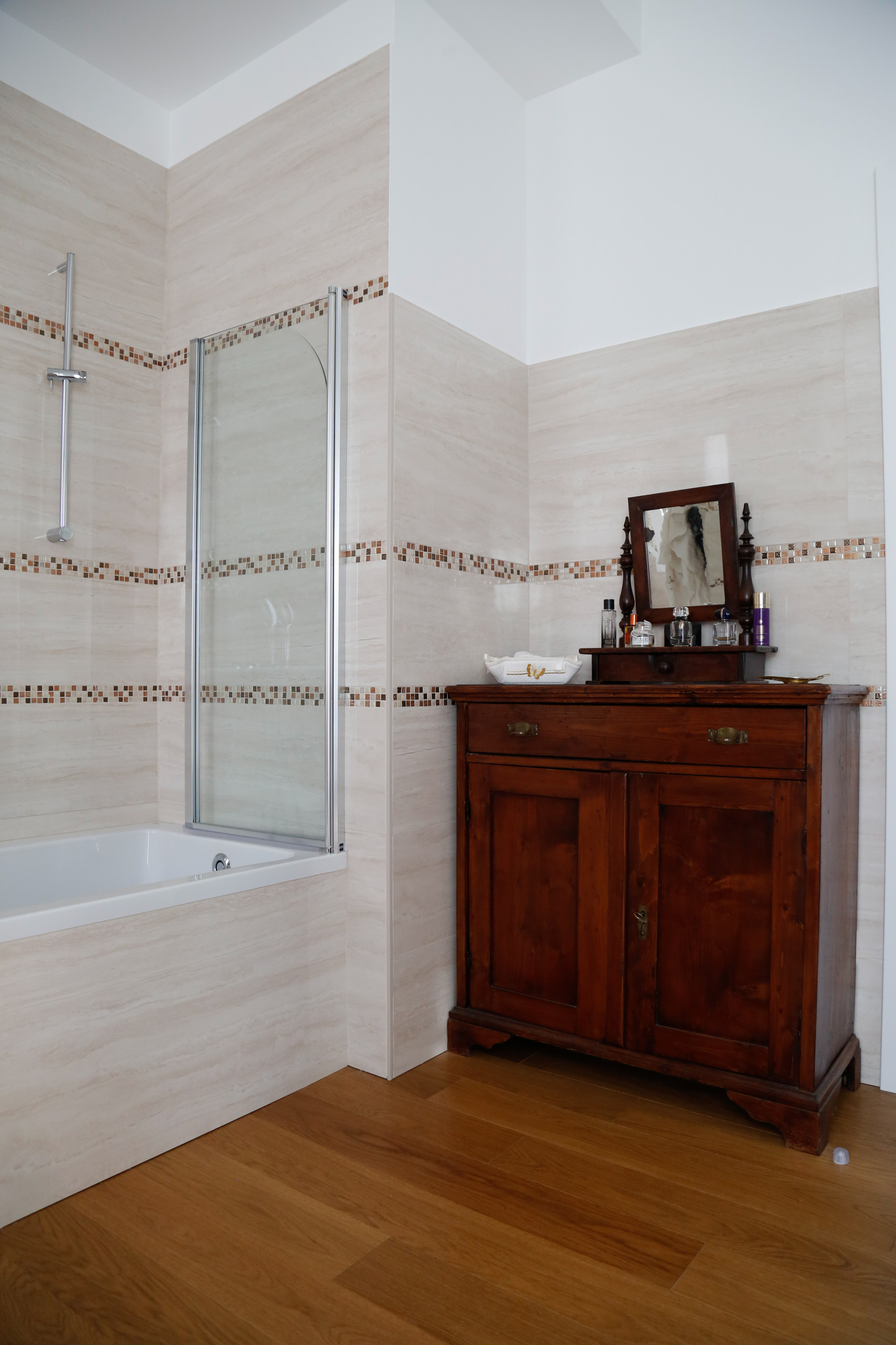 Ed ecco come si presenta oggi uno dei due bagni ristrutturati: stile classico e funzionale. L’impianto idraulico, così come quello elettrico, è stato completamente rifatto perché risaliva agli anni ‘50.