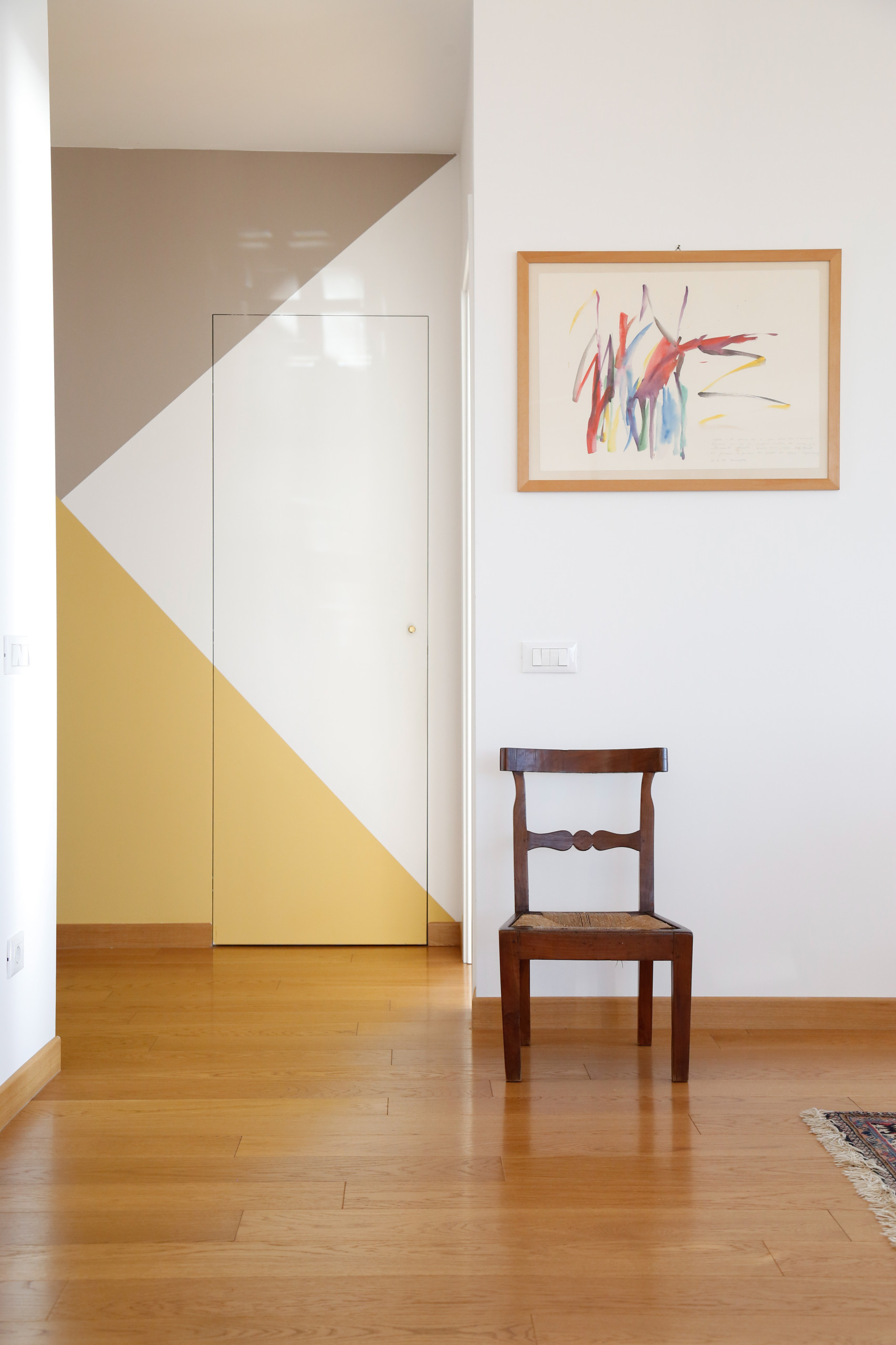 Per stemperare la presenza dei tanti arredi di antiquariato, l’architetta ha proposto ai committenti l’inserimento di interventi colorati di pittura: giallo e grigio che richiamano le striature del marmo presente.