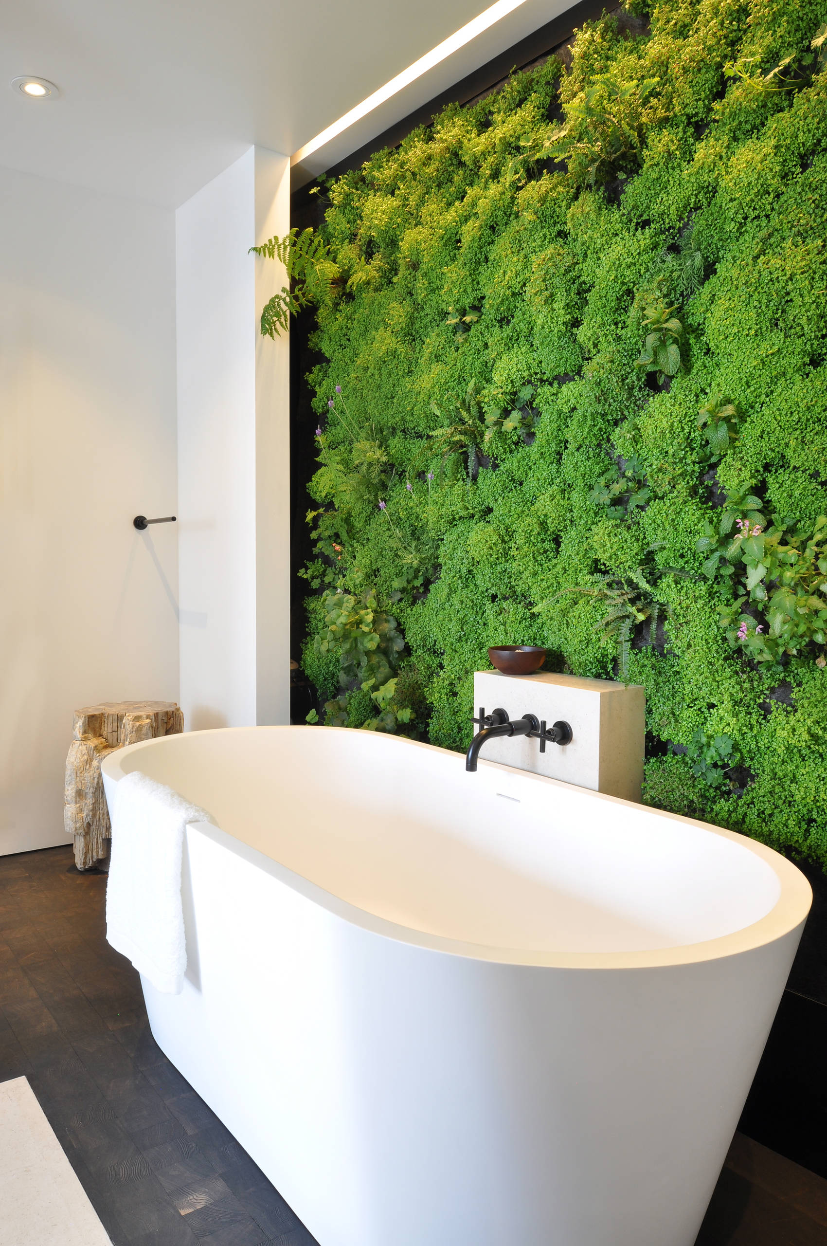 Le pareti verdi sono sicuramente l’ultimissima moda e sono particolarmente indicate per il bagno, dove vapore acqueo e umidità creano le condizioni ideali perché le piante crescano rigogliose. Una parete del genere è davvero scenografica e crea l’effetto di trovarsi in un giardino… anche se non ci si trova affatto all’aria aperta.