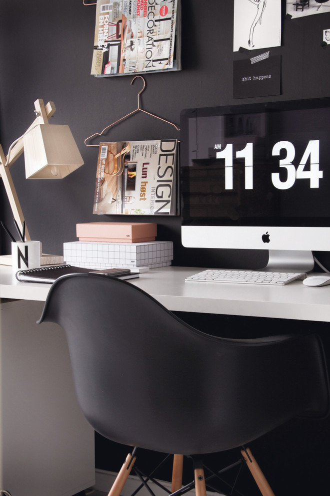Se ti piace arredare casa con idee insolite, puoi utilizzare le grucce in alluminio anche sulla parete a fianco della scrivania. Possono essere utili per appendere cataloghi o riviste di settore.