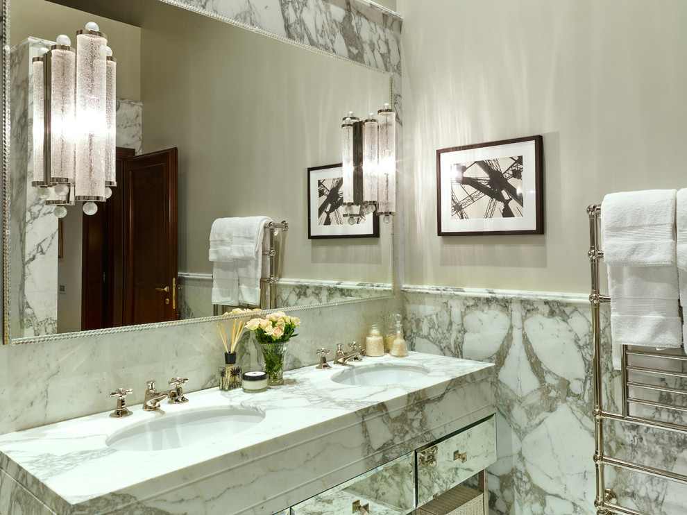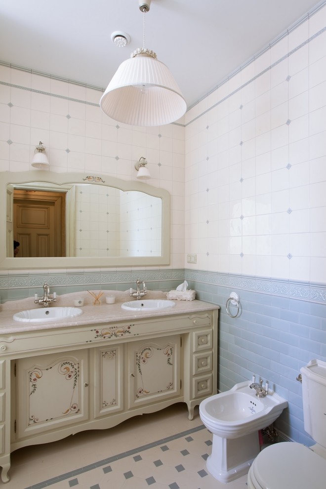 Modanature, decori, stucchi, boiserie, lampadari importanti sono elementi sempre presenti in un bagno classico, spesso elaborati anche nella loro finitura, che può essere lucida, dorata, argentata o, comunque, di grande impatto.