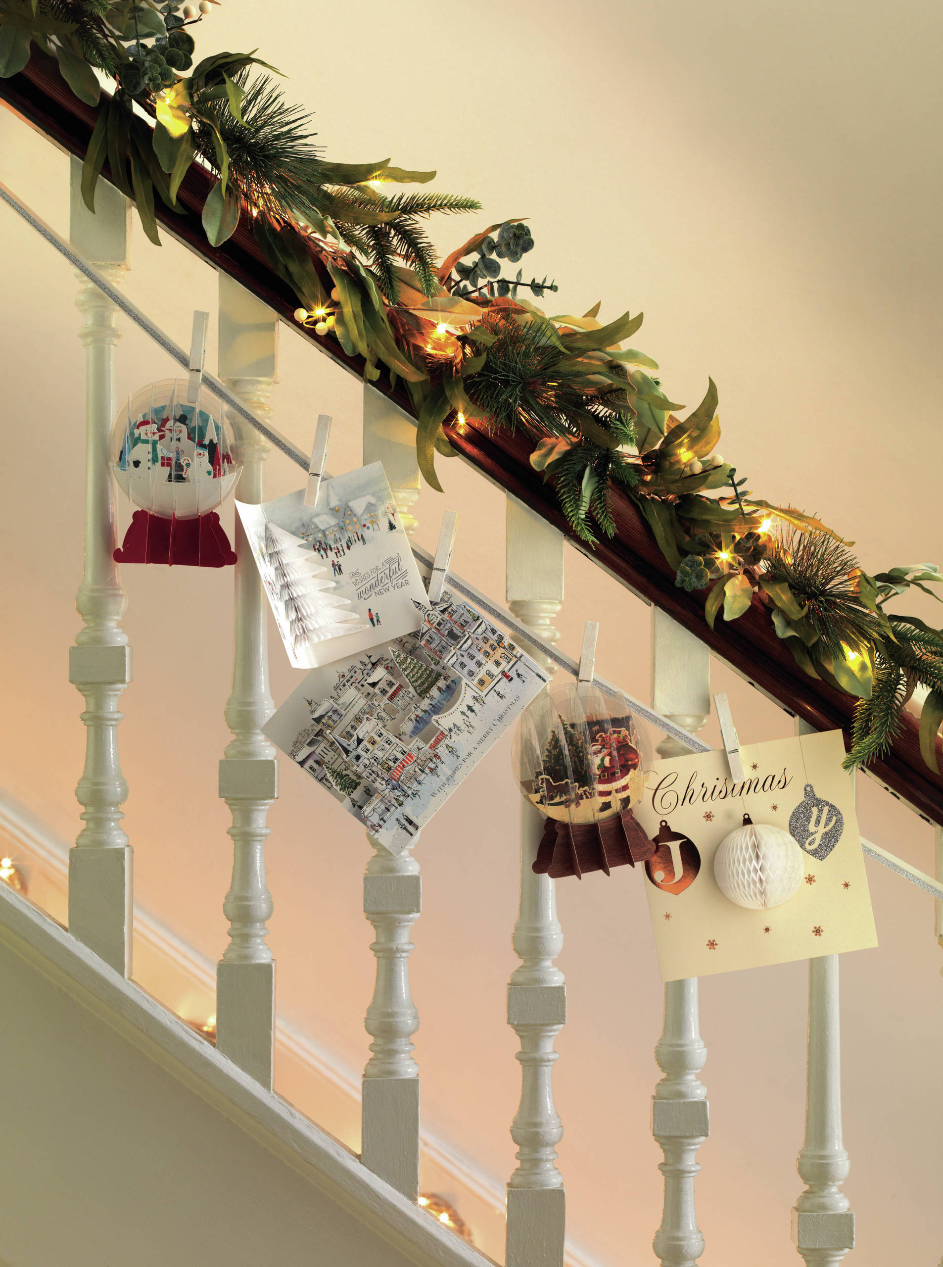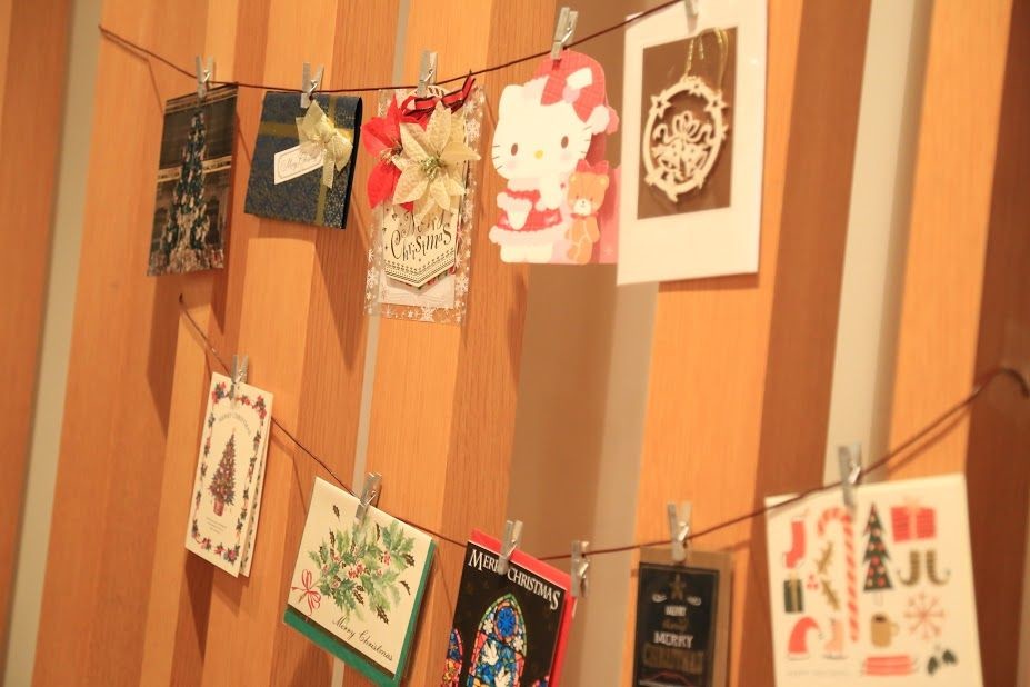 Se abbiamo conservato vecchi bigliettini d’auguri, possiamo trasformarli in una ghirlanda, da appendere al muro (come questa idea dal Giappone) oppure alla ringhiera delle scale.