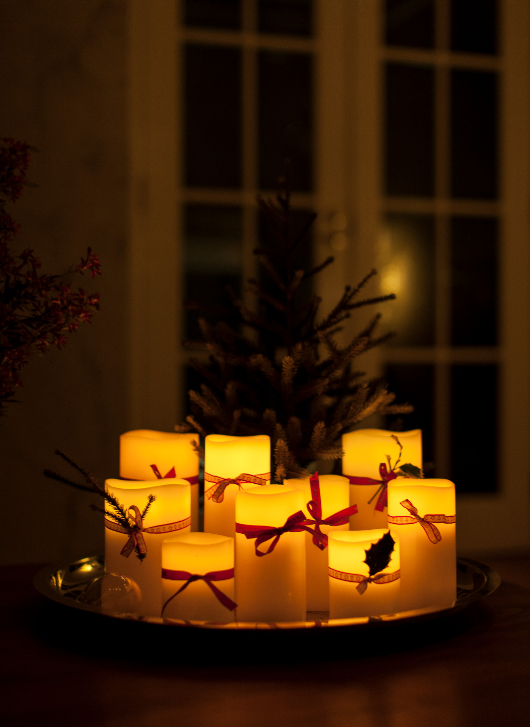 Il suggerimento semplice ma di effetto arriva dal Giappone: raggruppare candele di varie dimensioni e decorarle solo con un nastro e un piccolo fiocco.