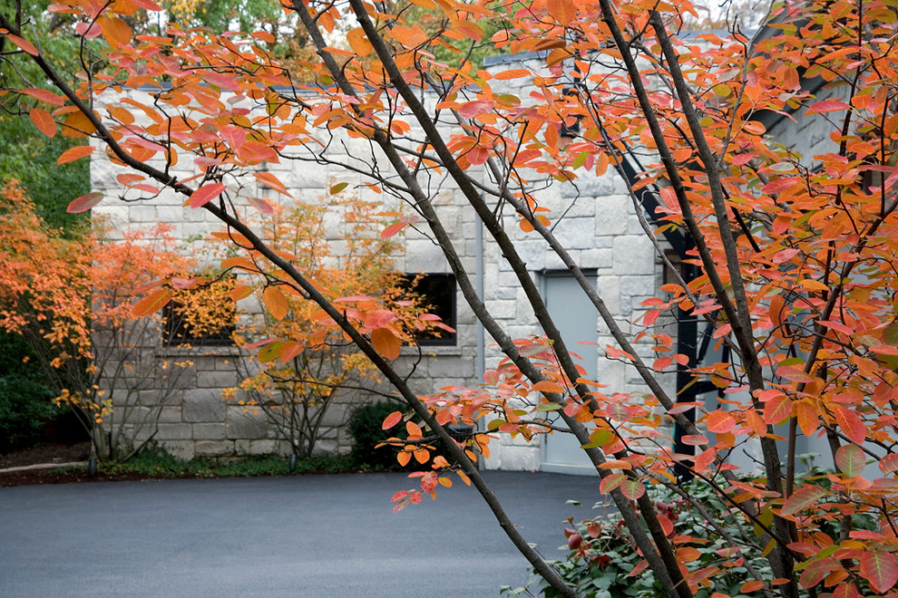 Amelanchier lamarckii, o pero corvino, in autunno inizia la sua trasformazione e le foglie passano dal verde brillante al giallo, all’arancione fiammante e al rosso, spiccando nella nebbiolina del mattino. Questo piccolo alberello trova diversi punti di attrattiva anche durante il resto dell’anno: in primavera stupisce con la sua fioritura a grappoli bianchi, con piccoli fiori che sembrano stelline; in estate matura tante piccole bacche blu commestibili, simili a mirtilli, di sapore dolce e ottime nelle macedonie (molto amate anche dagli uccelli).