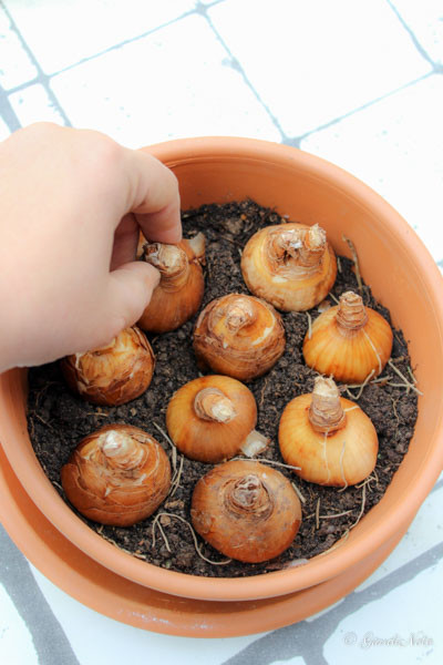 Scegliete una giornata con terreno inumidito, né secco e né bagnato, sarà più facile lavorarlo: basta una mezz’ora scarsa e una paletta. Se ne avete tanti da piantare, dividete il lavoro in più giornate, la fioritura così sarà scalare (e schiena e ginocchia ringrazieranno!).
