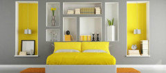 L’unione bilanciata di queste due tinte, così apparentemente diverse, può però dare vita ad ambienti interessanti e particolarmente dinamici. Soluzioni intense, solari e luminose che, a seconda delle composizioni, possono avere aspetti diversi: dal giocoso, quando è il giallo più intenso a prevalere, all’estremamente morbido e soft, se ci si spinge verso delle nuance pastello, fino ad arrivare ad ambienti spiccatamente “maschili”, se i toni di grigio si fanno più scuri e se il giallo accompagna trame più chiuse o tono su tono.