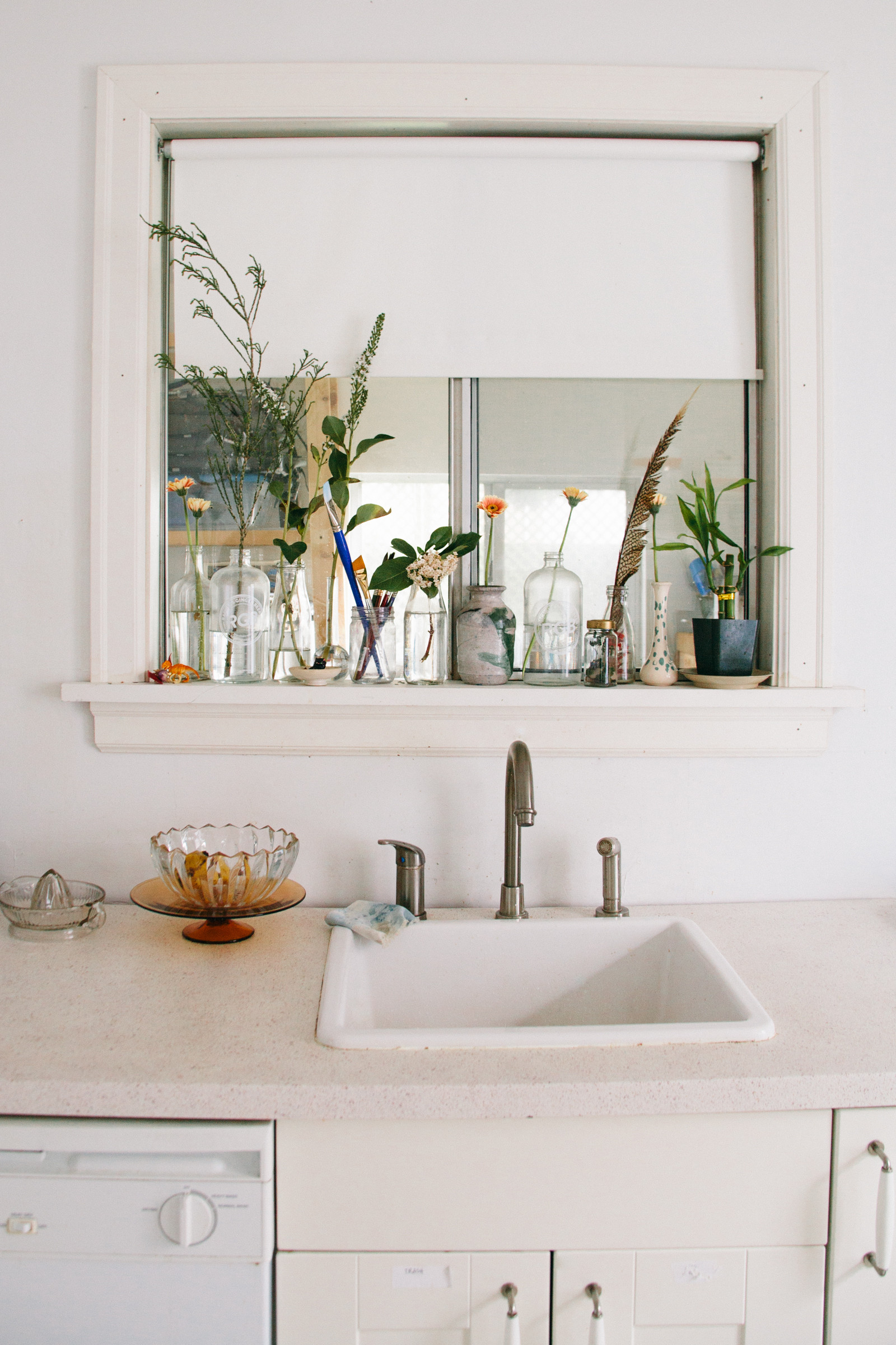 Unite una piantina in vaso con ramoscelli e fiori di campo, raccolti quando andate a fare una passeggiata e altri pezzi che trovate in giro, ad esempio stecchi e piume per una vetrina piena di vita e interesse.