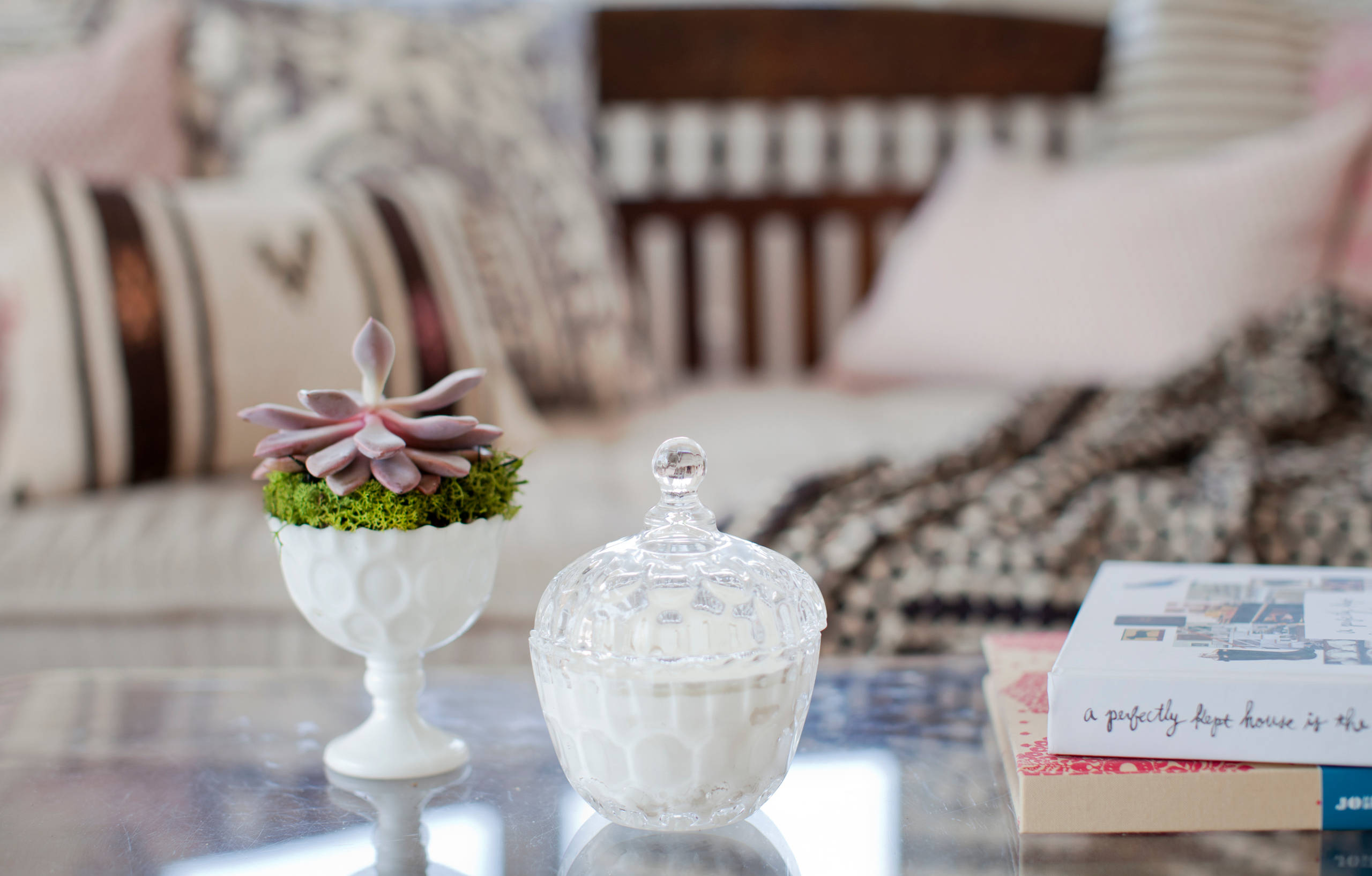 Dimenticatevi dei massicci vasi di terracotta: le piante succulente possono vivere in vasi fini e molto più piccoli. Quella che si vede in foto è stata inserita (assieme a del muschio stabilizzato) in una tazza di ceramica per creare un delicato centrotavola.
