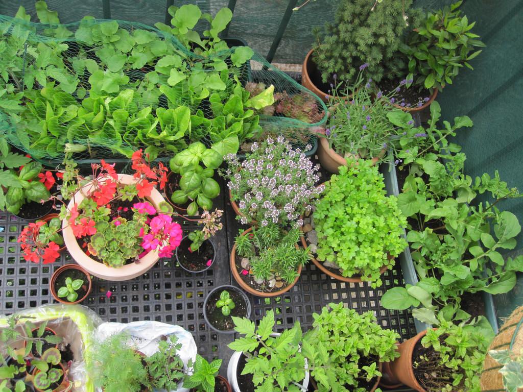 Per quanto mi riguarda l’orto in terrazza o in balcone deve essere funzionale e produttivo, quindi ben organizzato. Se serve una base in plastica forata per lo sgrondo dell’acqua, mettetela senza problemi, così come i famigerati vasi neri da vivaio (che catturano bene il calore del sole!), teli e coperture di plastica, e tutto ciò che può apparire “orribile” in un giardino ornamentale.