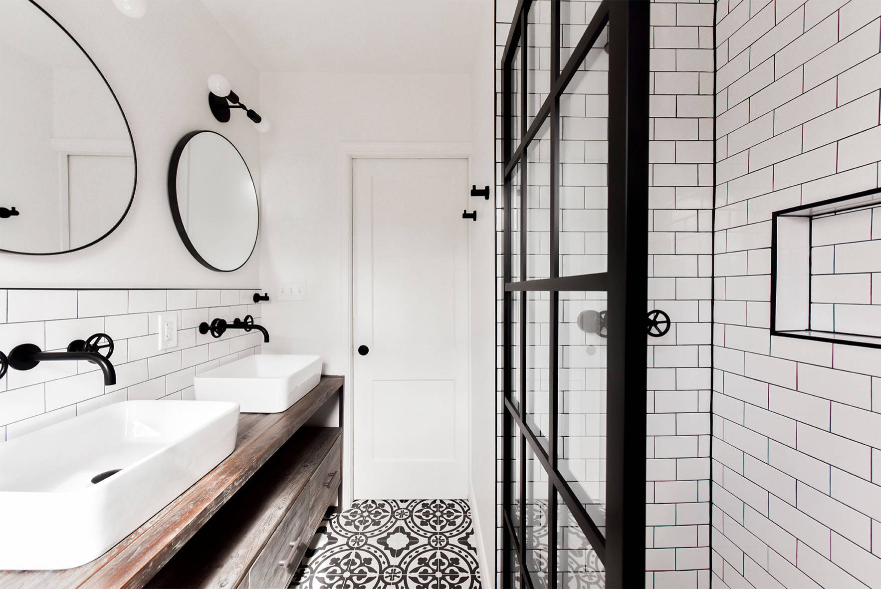 Lo stile industriale è una lettura del passato alternativa al vintage. Più grintosa e molto di tendenza, presenta alcuni elementi ricorrenti. Qualche esempio? Le “metro tile” alle pareti: piastrelle rettangolari posate in posizione sfalsata. Ma anche la porta della doccia con profilo in metallo nero, abbinato alla rubinetteria, anch’essa nera.