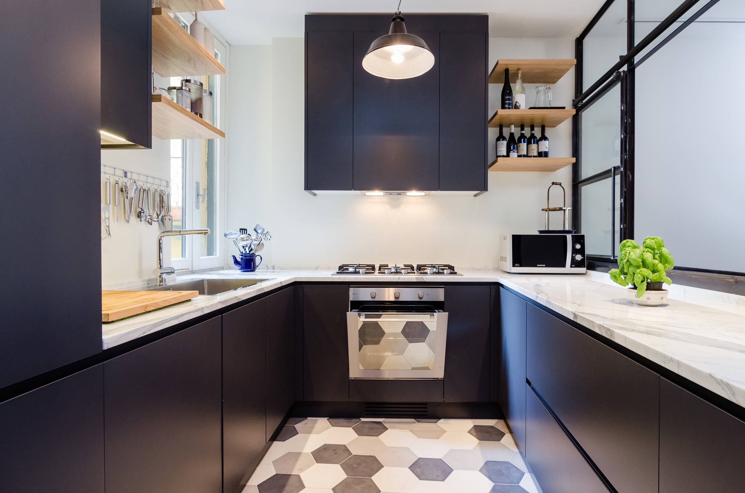 Le finestre aperte della cucina permettono di chiacchierare quando si hanno ospiti a cena, ma anche di chiudere se si sta cucinando un piatto importante troppo profumato.