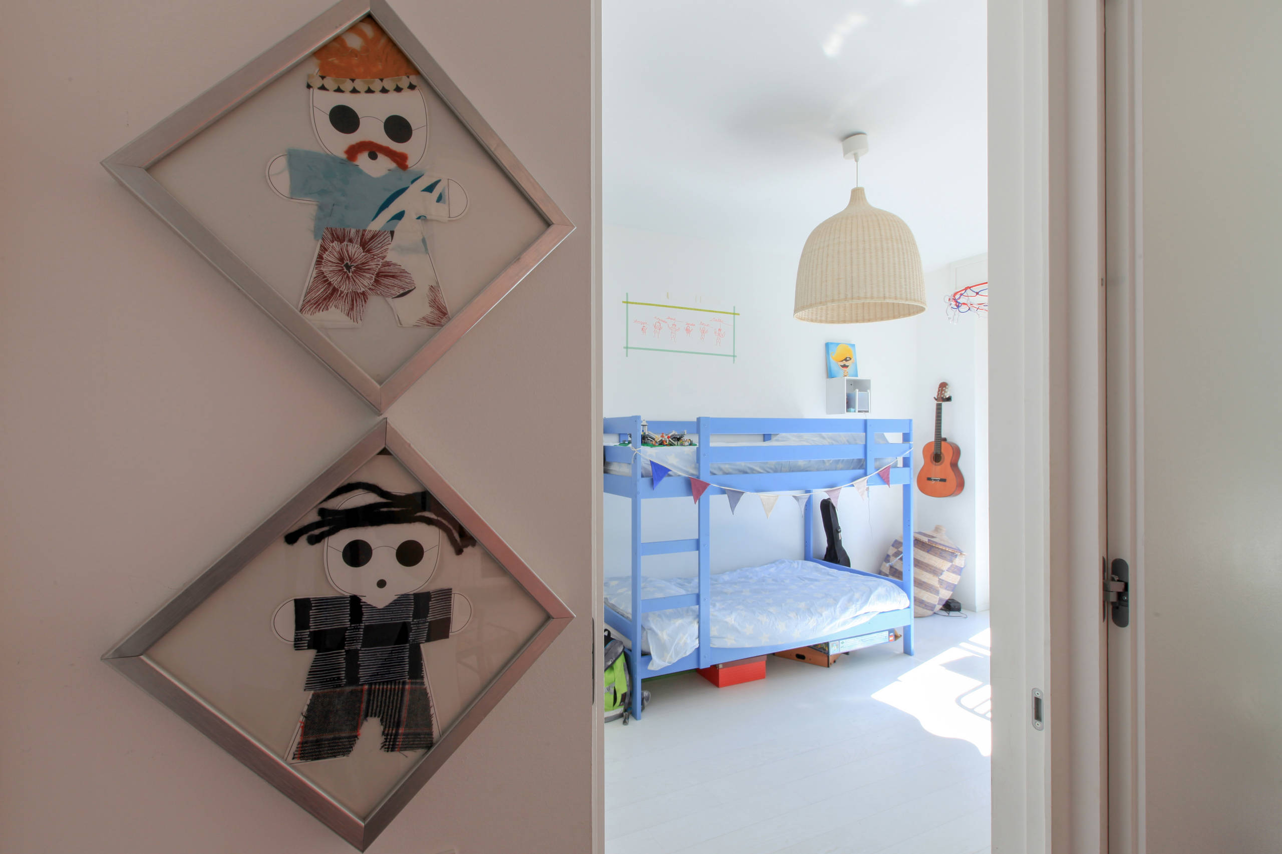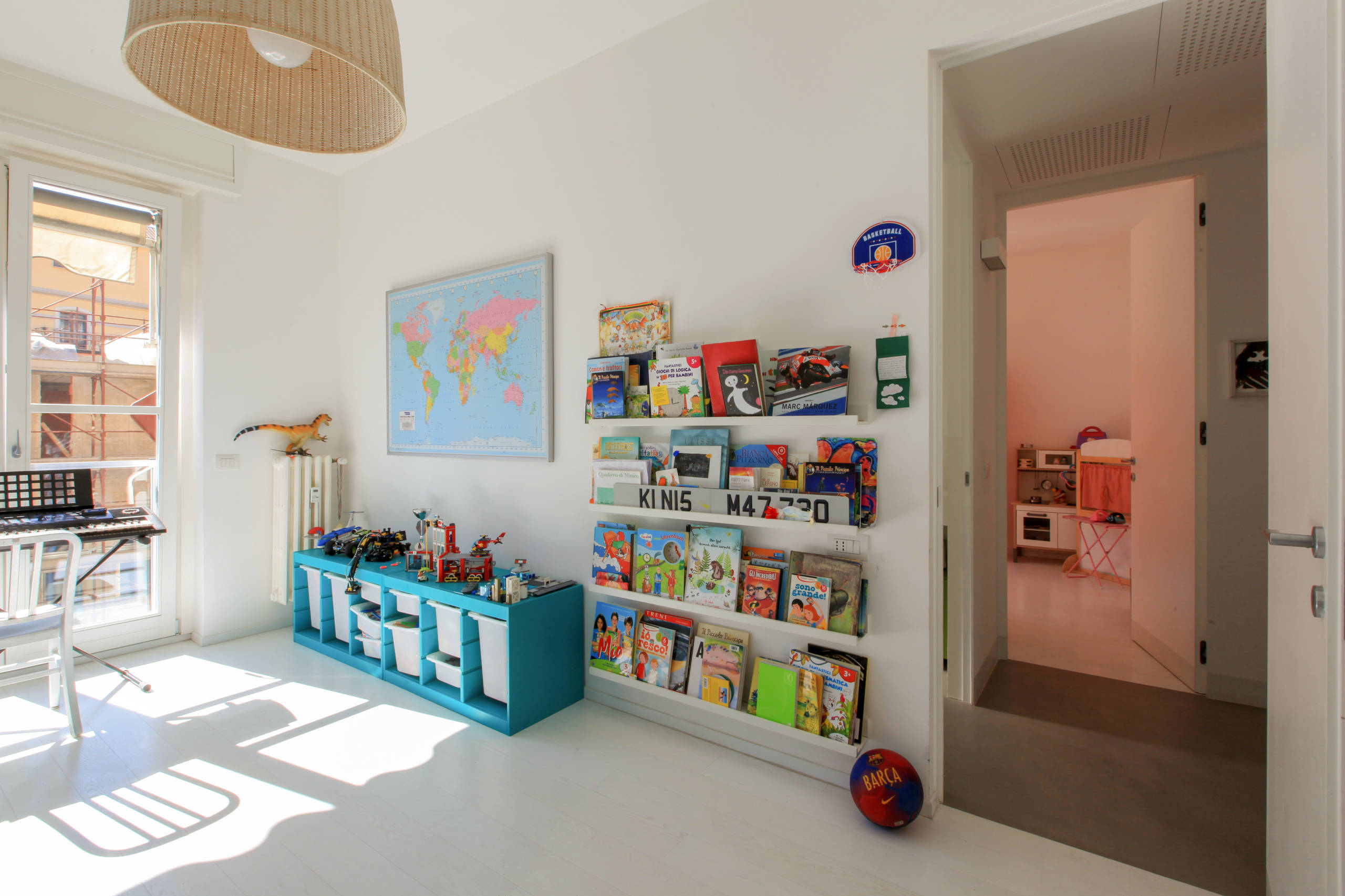 La camera dei fratelli è piena di luce come ogni ambiente della casa. «Prima di trasferirci qui abitavamo in un’abitazione luminosissima, con vista su una piazza. Perciò, quando abbiamo scelto questa casa, la luce è stato un elemento fondamentale. Non avremmo potuto farne a meno. In ogni momento della giornata c’è sempre molta luce», racconta Daria.